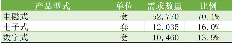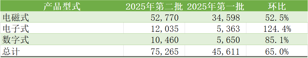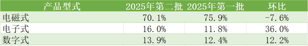 同时对比在2025年度两个批次的需求数量占比情况,电磁式产品在2025年第二批次中占比相对于2025年第一批次略有减少,电子式和数字式产品需求量明显增加。